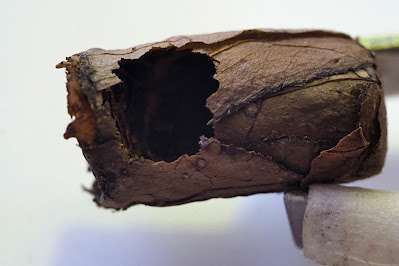 In October I removed the 3 leaf wrapped 'columns' and separated them into individual cells (basically cocoons, but still with a leaf wrap).